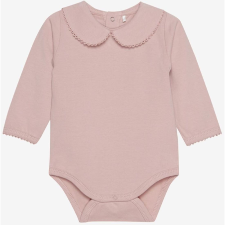 Body de manga larga de color liso de FIXONI. El cuerpo tiene cuello en el escote y se abre con prácticos broches en la espalda y entre las piernas. Fabricado con una calidad que se siente suave y cómoda contra la piel. Certificado según según GOTS - orgánico CERES-0366. ESTÁNDAR 100 por el certificado OEKO-TEX®. N° 2276-365 DTI.