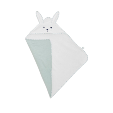 Con esta capa de baño con capucha de dos materiales con orejas de conejo, su bebé estará muy guapo cuando salga del baño. Su tamaño es perfecto para envolverle y secarle. El estampado de color paloma le da un toque delicado y refinado. Dimensiones: 75 x 75 cm Materiales: 100% algodón (algodón de rizo y muselina) Peso: 350 g/m2 de algodón de rizo y 120 g/m2 de muselina Lavable a máquina.