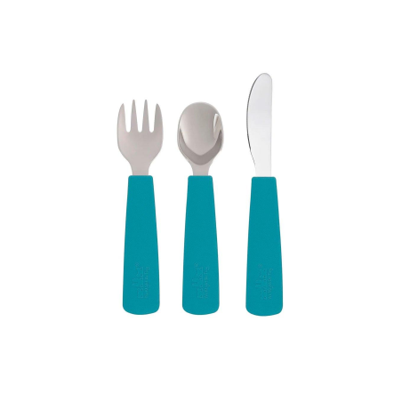Este conjunto de 3 cubiertos de silicona y acero Feedie de We Might Be Tiny, son ideales para que los peques se acostumbren a utilizar los cubiertos como los mayores. Con un mango ergonómico que se adapta perfectamente a sus manitas mientras crecen.