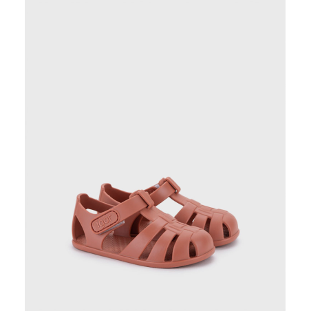 Cangrejera diseñada en concepto barefoot, cero drop, flexible y blandita, fabricada con al menos un 50% de pvc reciclado libre de ftalatos y cierre adherente.