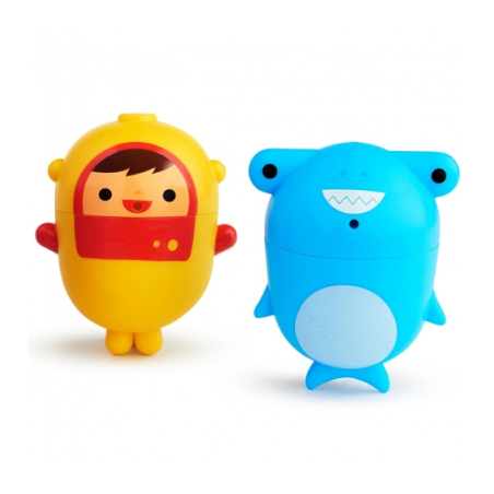 - Cada pack incluye dos juguetes lanzachorros desmontables. - Fáciles de abrir para su limpieza, previniendo la aparición de moho. - Fáciles de apretar por los niños. - Las piezas se pueden combnar entre sí, favoreciendo la creatividad. - Fomentan patrones de juego:` Acción + Reacción´ y `Coordinación Mano + Vista´. - Aptos a partir de 9 meses.