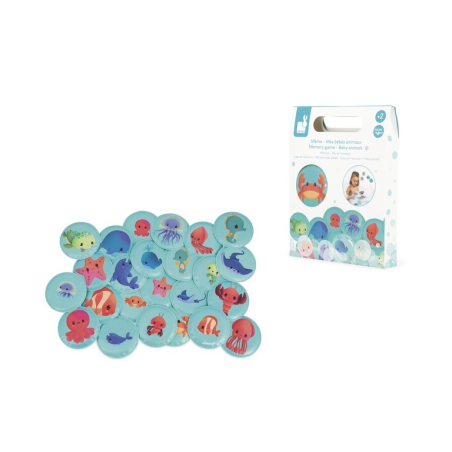 ¡Ayude a su hijo a encontrar los animales bebés! Este juego de memoria está compuesto por 12 parejas de animales, el objetivo es asociar el papá o la mamá con su bebé. Perfectamente adaptadas para el baño, estas 24 piezas de espuma flotan en el agua y se adhieren a la loza cuando se mojan. ¡Ideal para pasar momentos en familia divirtiéndose! Este juego permitirá a su hijo estimular su memoria mientras descubre la fauna marina. Juguete para el baño para niños a partir de 2 años.