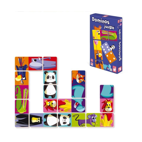 Para niños de 3 a 7 años. De 2 a 4 jugadores. Contiene 28 piezas de domino de cartón 2 posibilidades de juego: un lado ilustrado, para localizar y montar las 2 partes de cada animal un lado numerado, ¡para que los pequeños aprendan y pequeños y grandes se diviertan!