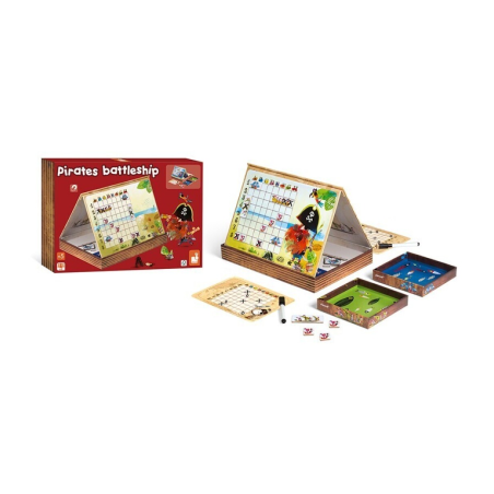 Para niños de 5 a 12 años. ¡Vamos grumete! ¡Sé el más listo y hunde los barcos de tu adversario primero! 2 niveles de dificultad (principiantes con 20 casillas / expertos con 64 casillas). 10 barcos magnéticos por persona para colocar en sus respectivas casillas. Una tarjeta de casillas (borrable) para anotar los tiros disparados sobre el campo adversario. Viene con un lápiz borrable.
