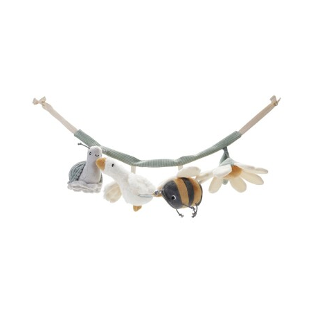 Esta cadena de juguetes para cochecito es fácil de colocar en un cochecito o en un asiento de coche y proporciona mucha diversión y entretenimiento en la carretera gracias al sonajero, el espejo y los juguetes chirriantes y rugosos. También estimula la coordinación mano-ojo.