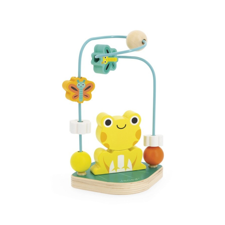 ¡A sumergirse en la selva tropical con este looping de rana! Con este juguete 2 en 1, el niño tendrá que reconstruir la bonita rana con dos piezas apilables mientras se divierte deslizando las cuentas en forma de mariposas y flores. Ideal para descubrir las formas y los colores mientras se trabaja la motricidad fina. Juguete de madera FSCTM y pintura al agua. Juguete de estímulo para niños a partir de 12 meses.