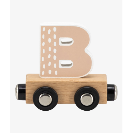 Letra Tren de Madera - Letra B de Tryco, de la marca de juguetes bebé Tryco. ¡Escribe tú nombre y Haz tú tren magnético con estas divertidas letras en madera! Sirven tanto para decorar la habitación del bebé como para jugar. Cada letra está alegremente coloreada con su propio color y bonitos motivos. Empieza con la locomotora y termina con el vagón final. Los trenes están equipados con un imán y, por lo tanto, son fáciles de conectar entre sí.