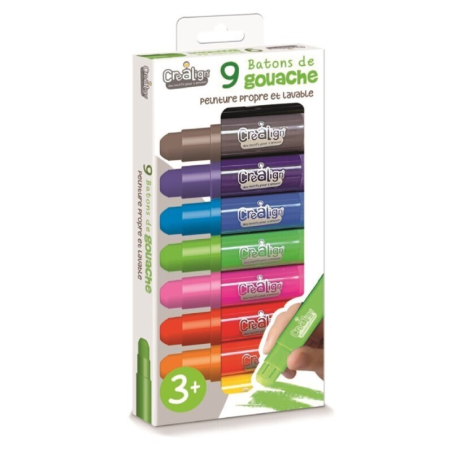 Los 9 lápices de gouache son de colores vibrantes, fácil de untar, agarre cómodo, tinta lavable de secado rápido y punta retráctil.