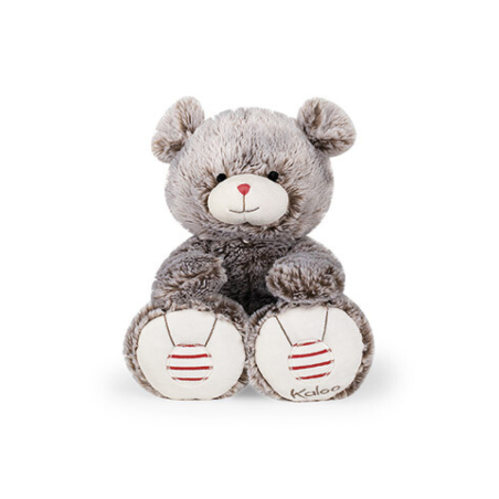 Oso de 38 cm con un pelaje de color gris, especialmente seleccionado por su excepcional suavidad. Sus largos brazos y grandes orejas permiten agarrarlo con facilidad y son propensas a toda clase de mimos. Su gran tamaño le permite sentarse de manera erguida para que resulte una óptima decoración en la habitación del bebé. Su minúscula nariz roja, piececitos bordados con listas tipo marinero y un monograma distintivo de la serie Rouge de Kaloo avalan cada uno de los artículos de esta gama y permite identificarlos inmediatamente.