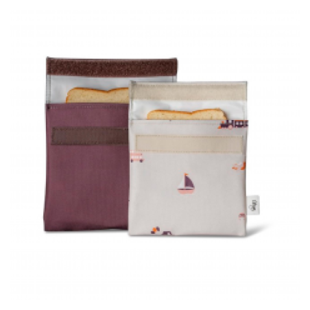Pack dos bolsas reutilizables para sandwiches y snacks, ambas con cierre en velcro. Son una alternativa ecológica y práctica para almacenar alimentos y reducir el uso de plásticos de un solo uso. Perfectas para llevar almuerzos saludables y snacks mientras estás fuera de casa.