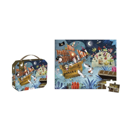 Ambiente nocturno y misterioso para este puzle de piratas en busca de oro y plata. ¡Pero la tarea es ardua y el camino hasta el cofre está sembrado de trampas! Los pequeños adorarán estas ilustraciones y les encantará realizar los puzles. Este está adaptado para niños de 4 a 7 años. Contiene un póster para ayudar al niño. Número de piezas: 36 Fabricado en Francia. Cartón con certificación FSC y tintas vegetales.